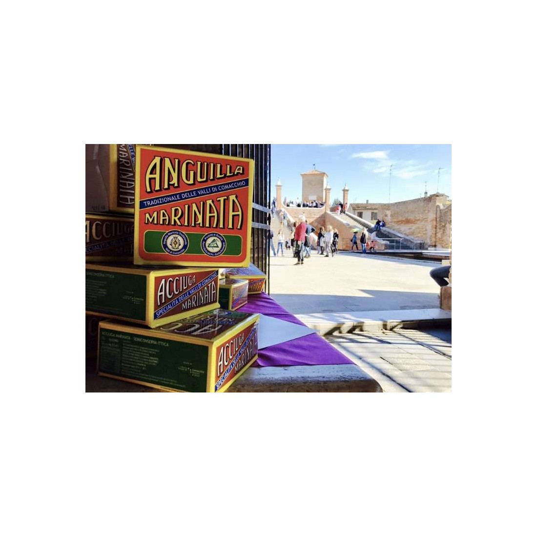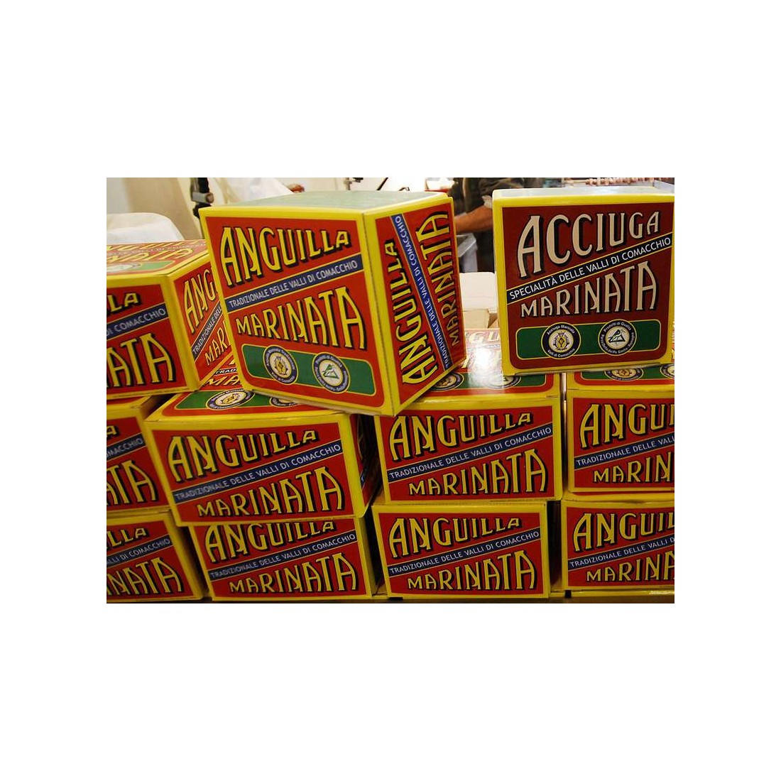 L’acciuga marinata delle Valli di Comacchio, rappresenta una specialità lagunare e nasce dalle tradizione alimentare tipica del territorio. Il prodotto appena pescato con l’attrezzo di pesca tradizionale, “il lavoriero”, viene trasportato vivo alla Manifattura in cassettine da 5 Kg, lavato, infarinato, fritto con olio di semi di girasole e poi lasciato riposare a bassa temperatura per un intera giornata.